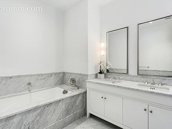 Inspired by the building's historic heritage, award-winning designer Alan Wanzenberg transformed 10 Madison Square West into a one-of-a-kind luxurious oasis that redefines New York City living. Each sumptuous detail in this never-lived-in new construction was cherry picked to offer the utmost comfort and relaxed livability. Open the solid hardwood entry door and immediately take in the light and airiness of the oak floors and soaring 11-ft ceilings. A graceful foyer with a large coat closet and soothing powder room leads to an expansive, sun-soaked living and dining room with elegant floor-to-ceiling windows that perfectly frame the iconic Empire State Building. Further ahead is a stunning gourmet chef's kitchen outfitted in the finest white Carrara marble, gorgeous custom Siematic cabinetry, extra large Kohler sink with garbage disposal, and state-of-the-art appliances including Wolf gas range, Wolf oven and convection oven, Sub-Zero refrigerator and wine cooler, and a ventilated hood. The Master Suite is seamlessly tucked away on its own separate wing and features ample closet space and plenty of natural light from a wall of oversized windows. Indulge in the tremendous ensuite master bath that features white Carrara marble floors and walls, NuHeat radiant heat floors, and a coveted five-fixture set including double sinks with Dornbracht fittings, custom vanity, extra deep soaking tub, and separate glass-enclosed shower with rain showerhead. Additionally, there is a centrally located utility closet that includes a Miele washer/dryer.Luxurious amenities include 24-hr doorman and porter, 24-hr concierge, kids' playroom, private courtyard garden on the second floor, live-in resident manager, resident storage units, secured bicycle storage, and perhaps most notably: access to the exclusive Residents' Club featuring a 60-ft heated lap pool, hot tub, fitness center managed by The Wright Fit, yoga and Pilates studios, spa treatment room, and locker rooms with steam and sauna.