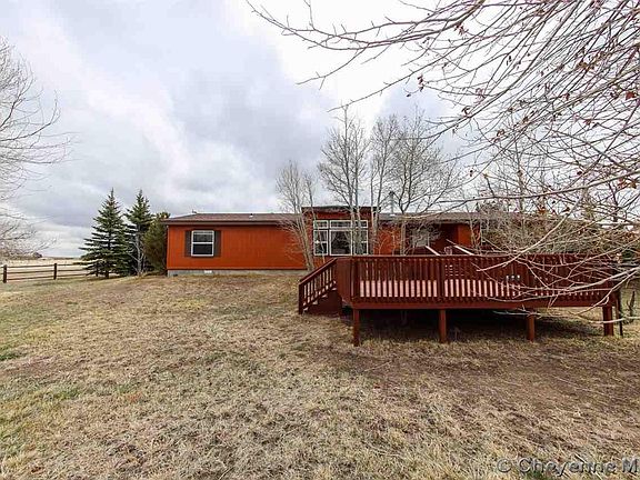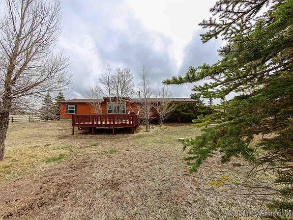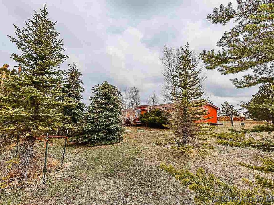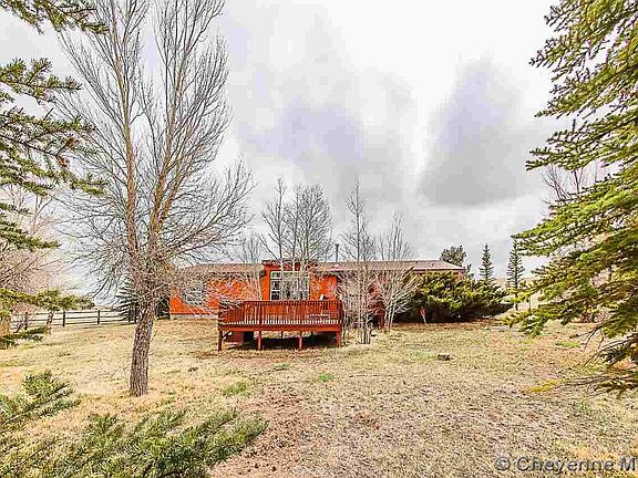 Finest country living: Nestled among trees this 3 bedroom, 2 bath home is all one level living situated on 7.91 acres, fenced. The property includes fenced pasture with loafing shed and round pen, 30x48 outbuilding with workshop area, corrals, hay storage, water hydrant, detached 24x24 garage. Enjoy mountain views from the 3 decks, Serene setting 14 miles west of Cheyenne.