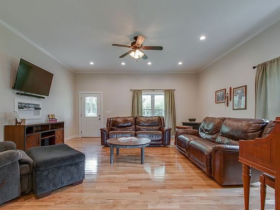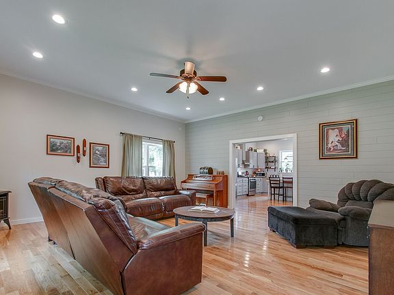 MINI-FARM close to TOWN..3 BR 2 Bath Home w/Brand new Kitchen Addition to DIE for..SS Appliances, Subway Tile, Gorgeous Gray Cabinets w/Butcher Block tops..3 Outbuildings...Barn..Fenced & Cross Fenced 4.1 Acres..Mulberry, Elderberry, Apple, Plum & Walnut trees, Blackberry bushes, Pond & Chicken Coop