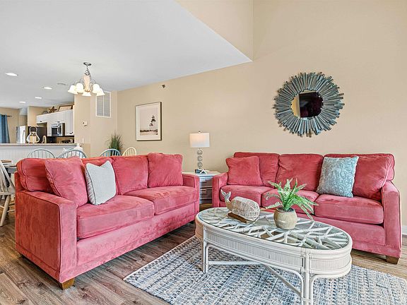 SOLD FURNISHED with no exclusions and New HVAC, 2023!  Nestled in the Bermuda Bay community, this investment property or second home is turn-key and meticulously maintained.  Equipped for a full rental, this unit was designed with an open floorpan that includes a roomy kitchen with eat-on bar and separate bistro table, large living area with gas fireplace, dining table that seats six, three guest rooms with connecting full bathrooms with the spacious upper level third guest room including a gaming/entertainment area for guests/tenants.  This unit also features dry access from the deep garage that is furnished with outdoor furniture for rainy day activities.  This property had multiple renovations/updates since purchase that include:  New HVAC (2023), LVT flooring throughout, interior paint (including garage), new appliances, and all new furnishings/accessories.  Only steps from the community swimming pool/waterpark and clubhouse amenities, this unit has location value with close proximity to area attractions and beach access.   Gas fireplace has never been used and seller has no opinion of its function.  This unit was furnished/staged by Site to Sea Staging & Design.  See associated docs for improvements list.