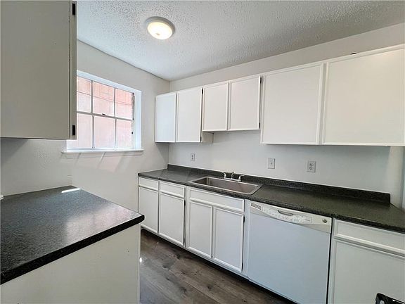 Conveniently located townhome with private rear yard. Downstairs has ceramic tile throughout and newly installed laminate wood upstairs. Downstairs kitchen cabinets living space is freshly painted. Downstairs there is a living room, den, dining room, kitchen Half bath. Upstairs features 3 spacious bedrooms and 1.5 bathrooms. The has primary bedroom suite features attached 1/2 bath that connects to the full bath that also can be accessed from the hall. Kitchen appliances included. Washer dryer hookups located in rear shed. . Off street parking! Smoke free. Pet free property.