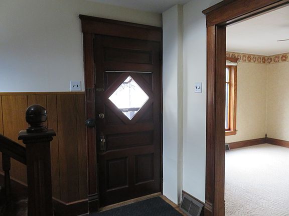 Enjoy your cup of coffee on the porch swing of this lovely Victorian home. 3-4 bedroom/2 bath. Beautiful with original woodwork, stain glass windows. Good floor plan. Main floor has living room, dining room, den (possible 4th bed), full bath, kitchen, back porch with laundry and closet. 3 bedrooms and full bath upstairs. Walk-up attic for great storage and potential extra living space. Newer windows. Dry basement. Mostly updated electrical and plumbing. Stove, fridge, dishwasher, washer, dryer included. Fresh paint inside and out. 1 car detached garage with workshop and upper storage. Level lot makes yard maintenance easy. Young apple tree will be producing fruit soon for many years to come. Only 3 blocks from YMCA, elementary, and middle schools. $98,000. I will add more pictures when I can get over there to take them. So check back later!