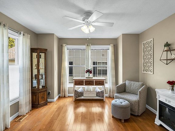 Wait no more! Turnberry Ridge beauty boasts spacious rooms including a one-of-a-kind primary ensuite. This huge area utilizes 3 distinct rooms for the owner's private retreat: bed and reading area, double-sink washroom, shower & separate jacuzzi rooms. The second level is finished with 2 more bedrooms/office and a built-in storage reading nook seat. The well-appointed and popular main floor plan invites family and friends to mingle or find quiet time throughout. The pictures don't lie and these sellers have not missed a beat while remodeling over the last 6 years. Noteworthy updates include the bright and airy 12x21' eat-in-kitchen where the breakfast bar separates eating area from oversized cooking prep space. Quartz ctops, an abundance of white cabinets porcelain tile flooring and newer appliances (2020-2024). A special feature is the 93x60" - 95 efficient HI-E triple window that keeps the west facing weather affects regulated. Enjoy the oversized remodeled laundry room with utility cabinet/sink. The formal dining room design is comforting with unique built-in storage unit, hardwood flooring and trim package. A large brick gas fireplace anchors the family room, while the front room can double as a living room/office. Rheem HVAC system (2023); Roof (2018); full privacy fenced yard (2020). The oversized 2 car garage has a keyless entry, deep storage bump-out and pull down stairs that lead to the floored attic space. Convenient to Parkland CC, popular restaurants & shopping. Easy I 74-57-72 access. Make this your next home!