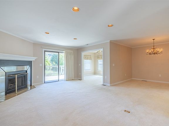 Single-level townhouse with low-maintenance living and nice golf course views from the spacious deck. A large living area with a cozy gas log fireplace and a separate formal dining space with a wet bar. The primary bedroom offers an attached bath with a separate makeup vanity area and access to the deck via sliding doors. The secondary bedroom has a second bathroom, which has access from the hall. Heated and cooled sunroom adds versatility. Condominium-style HOA covers exterior maintenance including roof, garbage, lawn care, and street lights. Updates include newer vinyl windows and a gas water heater. Conveniently located near shopping, schools, dining, and medical facilities.