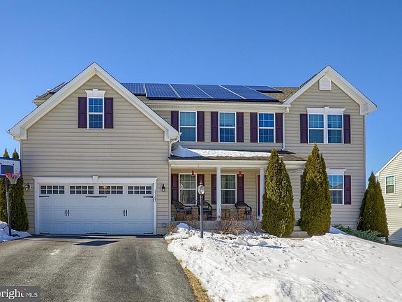 Located in Dallastown School District in the popular Logan's Reserve neighborhood is where you will find this wonderful 5 bedroom, 3.5 bath Colonial. Conveniently located to I-83 & Maryland makes this home ideal for the commuter. Take advantage of the communities amenities to include: clubhouse, swimming pool, walking path, workout facilities, children's play area, putting green & basketball court. Great benefits can be had with the installed Solar panels. The bright & open main level features 9' ceilings and offers a spacious kitchen with center island, beautiful cabinetry, granite counter tops and stainless steel appliances. Open to the kitchen you will find the breakfast room with vaulted ceiling and a door leading out to the back yard. Relaxing family room with gas fireplace, living room, private office, foyer, guest bath and mudroom completes the main level. At the end of a long day enjoy retiring to the spacious master suite with a private bath offering a walk in corner tile shower, double vanity, soaking tub, walk in closet and separate water closet. Four additional nice size bedrooms, one with a full en-suite bath can also be found on the 2nd floor along with a laundry room and an additional full bath. Attached front load 2 car garage, covered front porch, security system and a spacious unfinished lower level great for future growth. Located only minutes from Lake Redman & Lake Williams, enjoy hiking, fishing, picnicking & boating. This home offers plenty of room for the growing family. Schedule your private tour today to explore all of the amenities this home and community have to offer.
