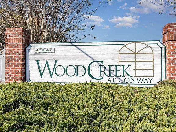 Three-bedroom two bath residence in well maintained Wood Creek subdivision! This home is tucked away on a quiet Cul de sac and features stainless steel kitchen appliances, washer and dryer, fresh paint, new HVAC, tile and wood flooring. The large driveway can accommodate multiple vehicles. There are front and rear covered porches for your enjoyment. The rear porch has a ceiling fan, attached storage shed and a large concrete patio. This exceptional Conway location is located just 20 minutes to the beach! This residence is close to Coastal Carolina and Horry Georgetown Technical colleges, airports, medical facilities, shopping, dining and world class golf! Contact your Realtor to schedule a showing today!