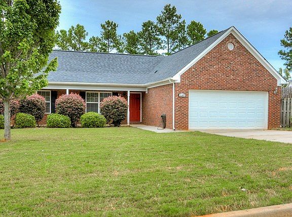 Cute, well kept home at a fantastic price! Located close to Fort Gordon, this Grovetown home sits on an ideal, level lot in a great neighborhood. The timeless brick exterior, brand-new 30-yr architectural roof, red front door and manicured lawn and landscaping make for easy curb appeal and low-maintenance up-keep. Foyer opens into spacious great room with cathedral ceiling and fireplace with French door to back patio. Formal dining room has chair-rail molding and connects great room to kitchen. Kitchen is spacious with pantry, range, vent hood, dishwasher, plenty of cabinet and counter space, and breakfast nook. Large laundry room doubles as mud room with garage access and extra storage. Down the hall, the owner bedroom boasts its own en suite full bath with garden tub, separate shower and dual sinks. Second full bath with tub/shower combo is convenient to main living areas as well as secondary bedrooms. Great backyard with privacy fence!