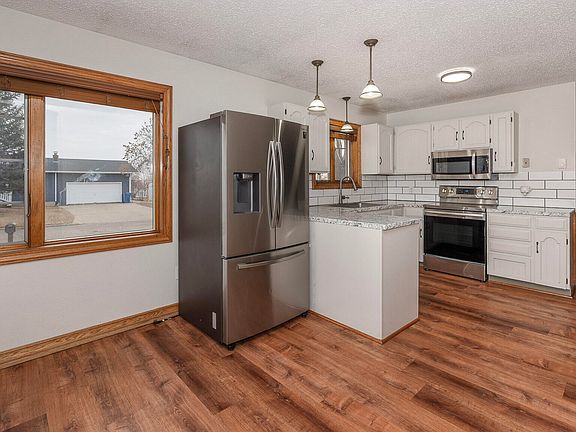 Nestled in an ideal location, this spacious ranch-style home offers a stylish kitchen featuring modern subway tile, updated appliances, and a cozy dining area. Two generously sized bedrooms on the main level, including a primary suite with a walk-in closet, complemented by a tastefully updated full bath. The living room provides ample space for relaxation or entertaining, with a versatile flex area (reading/play area) that opens directly onto the back deck—ideal for outdoor gatherings. Quality oak doors and trim plus low-maintenance flooring throughout—minimizing the need for carpet (bedrooms only) and making cleaning a breeze. The expansive lower level features a sprawling family room, updated ¾ bath with a tiled walk-in shower, laundry, and 2 additional non-conforming bedrooms. Outside enjoy the fully fenced, private backyard—your own peaceful retreat—complete with a gazebo/hot tub room and a garden shed for extra storage. The heated, attached two-stall garage ensures comfort year-round, while durable steel siding and Anderson windows add to the home's appeal. Quick highway access makes commuting for work/play super convenient. Don't miss this incredible opportunity to own a home in a great NW location with spacious living.
