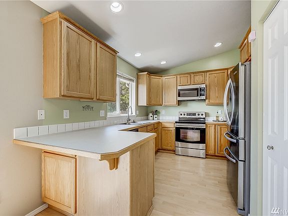 Welcome to this pristine 3 bed 2.5 bath tri-level in very quiet neighborhood. Large bedrooms on upper level & master bedroom that boasts 5 piece en-suite & large walk in closet. Home has very spacious floor plan w/ tons of storage,2 Living areas, kitchen lots of counter space, eating bar & stainless steel appliances. Large slider of dining area opens to a large deck & fully fenced back yard, room to garden & large out building that stays. 2 car garage, minutes to shopping and I-5 access.