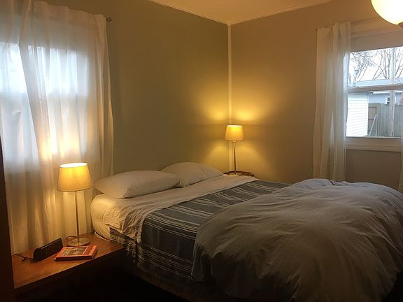 Cozy 2 bedroom with large 1.5 car detached garage and a large fenced back yard. Kitchen has newer oak cabinetry and includes good looking appliances (fridge, dishwasher, oven/stove). Around the kitchen is a laundry area with more storage and a newly updated electrical panel with new circuit breakers. Back door of kitchen leads to very private and large fenced yard (6 foot fence around entire perimeter). 1.5 car detached garage has been rehabbed with new siding. Windows have been replaced. Furnace replaced 2014. Bathroom is completely remodeled and has a subway tile shower, pedestal sink and new toilet. This home is move in ready. Roof is scheduled to be replaced early 2020.