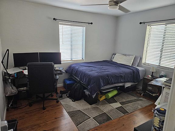 This is a private room with two large windows. There is a walk-in closet and the doors have passcode access as well as keyed access. The room is large enough to fit a queen sized bed and medium sized desk and is a perfect location in proximity to the University of Arizona campus. There are two bathrooms to be shared, a fully furnished living room and kitchen, covered parking, and in-unit laundry. The property has been renovated recently and there's a full sized couch to relax on with a TV. The walking closet has a built-in dresser that is very easy access and the ceiling fans have recently been replaced with updated designs and remote controlled. You honestly can't ask for a better situation for a student. This lease term is for 6 months. That is because I am moving out midway through my lease period and need someone to fill in. After that, renewal is likely to be offered for a 12 month period.