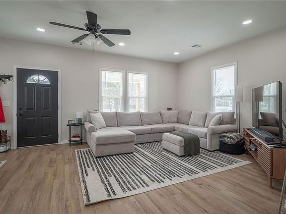 This residence has undergone a comprehensive renovation, including but not limited to the new roof and CH/A unit. It boasts three bedrooms and one bathroom, complemented by a spacious living room that seamlessly transitions into the kitchen. If desired, the yard provides ample shade and space for future expansion. Furthermore, the two-car detached garage, constructed in 2024, offers additional storage and parking. The home showcases a modern color palette and is equipped with central heating and air conditioning, ensuring optimal comfort. All types of financing options are welcome.