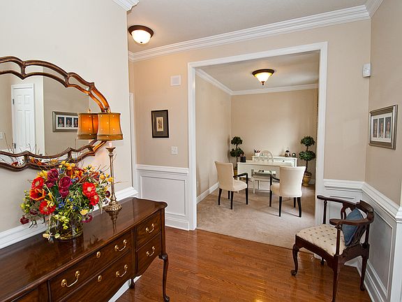 Best Value in Treesdale! Magnificent four bedroom, three and a half bath brick provincial on a cul-de-sac lot! As you enter this extraordinary home you are greeted by the spacious foyer highlighted by lovely hardwood floors, crown moldings, wainscot and side staircase. The formal living room is open to the foyer and is enhanced by crown moldings and large windows with custom blinds. Elegant columns frame the family room with a wall of windows and a stunning brick fireplace accented by an ornate wood mantel. A French door opens to the handsome first floor den featuring crown moldings, Judges paneling and custom built-in book case. The spacious kitchen offers a large center island, custom cabinetry with granite counter-tops, appealing backsplash, stainless steel appliances, crown moldings, hardwood floors and opens to the spacious breakfast room flanked by windows and a glass door leading to the rear patio. Crown moldings, chair rails, wainscot and stunning chandelier enhance the elegant formal dining room. The magnificent master suite hosts a trey ceiling, full length windows, lighted ceiling fan and offers a lavish master bath with a vaulted ceiling, double sink vanity with granite counter top, relaxing whirlpool tub and double closets. The second and third bedrooms are accented by crown moldings, generous closets and ceiling fans, they share the Jack and Jill bath with a granite top, double sink vanity and full tub and shower. The fourth bedroom suite has a private bath with full tub and shower. A convenient second floor laundry room completes the second floor. The lower level hosts a game room and a half bath. The oversized three car garage is the perfect place for the custom built family drop zone (Custom built cubbies and bench storage). Located on a cul-de-sac with a beautifully landscaped yard. Treesdale Amenities: community center, pool, water slides, fitness center, playgrounds, tennis & basketball courts and more offering a lifestyle to enjoy!