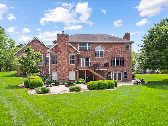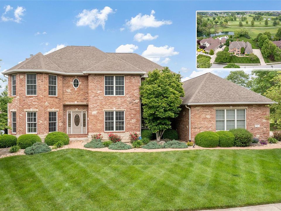 Breathtaking full brick two-story home boasts over 5,000 sqft situated on the 7th fairway of Far Oaks Golf Course. You are greeted by 2 story entry foyer leading to the formal dining and stately office with French doors. Beautiful kitchen features: tile backsplash, large island, stainless appliances, breakfast area with deck access all opening to hearth room and awesome bonus Den. 2nd level: escape to the luxurious master suite with vaulted ceilings, massive walk in closet and ensuite bath featuring a whirlpool tub, dual vanity, and private commode. 2 bdrm share a Jack & Jill bath, 4th bdrm is a Jr suite with a full bath. Finished walkout basement: full wet bar, large family room, game area, theater room, full bath and LOTS of unfinished storage. Additional Features: walk-in closets in every bdrm, dual hvac, Anderson windows, main laundry, 3 car sideload garage and amazing outdoor space: backyard patios and new maintenance free deck overlooking golf course and pond. OFallon Schools! Additional Rooms: Sun Room