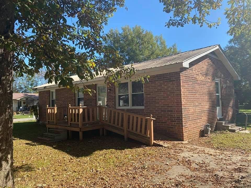 Adorable 3 Bedroom/1bath 1056 sq ft Brick Home...HANDICAPPED ACCESSIBLE plus a 576 sq ft detached garage/shop with electric and plumbing....could be a studio apartment. NEW WINDOWS,FRESHLY PAINTED,NEW FRONT DOOR, NEW STORM DOOR....Tucked in a quiet neighborhood. Handicap ramp to front door. shared drive way.