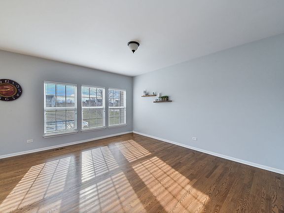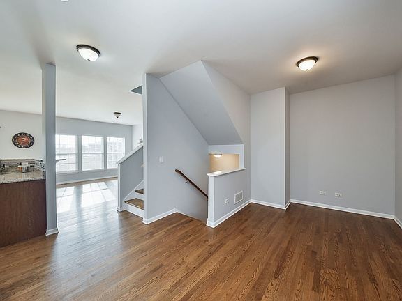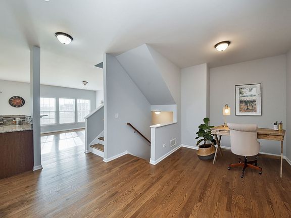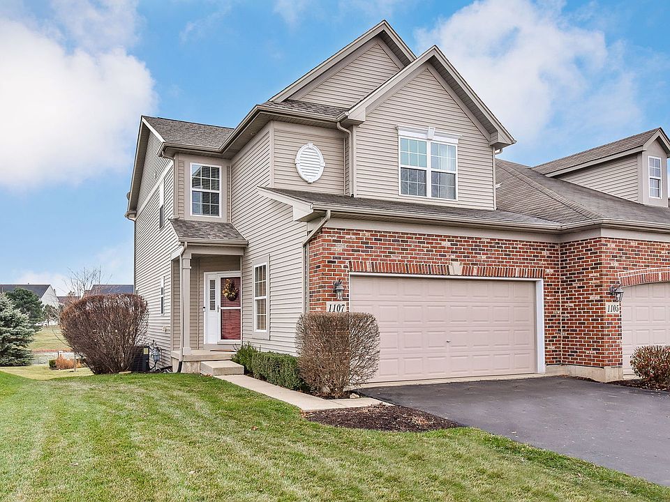 Beautiful two story duplex with lovely upgraded hardwood floors throughout the first and second floors. An abundance of natural light highlights the open concept layout. A large great room with a wall of windows boasts a wonderful view of the tranquil pond, trees and flower garden. The kitchen offers granite and stainless with plenty of cabinetry and counter space to prepare meals with family and friends. The island has a breakfast bar and overlooks the deck and back of the home. An adjacent dining area offers plenty of space for a good sized table. A den (perfect space for a home office or home schooling) and guest powder room complete the main level. Upstairs the primary suite has a vaulted ceiling, large walk in closet and private bath with a dual vanity, tub and separate shower. Two additional bedrooms share a jack-n-jill bath. Laundry and a loft are also on the second floor. The unfinished English basement is ready for your finishing touches. It is plumbed for a full bath and could be easily finished with a good sized family room while maintaining generous storage space! The home is priced $20-25K under similar properties sold this year to account for the cost of finishing the basement. Additionally this is the only home with hardwood on the main and second levels and has a water view. The brand new deck has been installed overlooking the backyard and pond! Easy access to the Metra train to Chicago and highways.