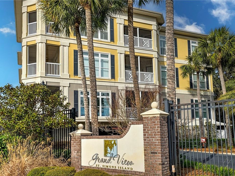 Prepare to be amazed by this stunning first floor condo situated in the highly sought after Grand View complex. This beautiful condo is being sold COMPLETELY FURNISHED. The condo features recent updates which include wide plank flooring throughout, custom interior decorator paint and trim, elegant crown molding, and Monte Carlo propeller ceiling fans in every room. The Kitchen features upgraded appliances including double ovens and luxurious quartz countertops. The spacious living room opens to a screened in patio that offers a delightful view of the pool, with an additional entrance accessible from the primary bedroom. Speaking of the Primary Suite, it features two walk-in closets, double vanity sinks with pristine white quartz countertop and a lavish marble shower with Moen shower head.. A separate laundry room has Whirlpool washer and dryer, 2 year old water heater and water softener system. The front office is exquisitely adorned with a glass top desk resting on an industrial wheel and gear base along with two large open book shelves. Grand View is a secure gated complex with covered parking in the form of two garage spaces per owner as well as additional storage space. Located in Sea Palms West, residents have access to an abundance of green spaces and picturesque walking trails. This condo has all the best that island life can offer and must be seen to fully appreciate. Could be converted to a 3 bedroom by adding a door where the cased opening is for office and using an Armoire for closet or build in a decorative closet like homes on Sea Island homes have. **SELLER IS ALSO GIVING $1,800 IN CONCESSIONS TO COVER THE OUTSTANDING ANNUAL ASSESSMENTS FOR 2024 AND 2025**