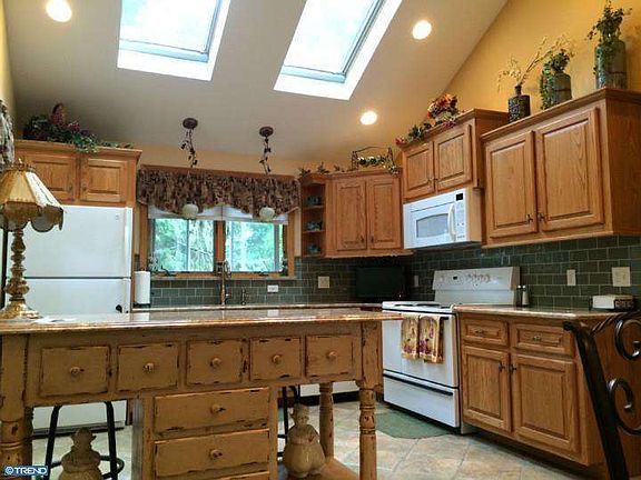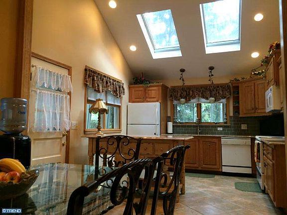 This Pennsylvania Quarry Stone ranch home will embrace you as you enter it through the country style screened enclosed porch and into the cozy gourmet's kitchen with soaring vaulted ceilings, tastefully updated with 12x12 ceramic tile floor, glass subway tile back splash, granite counter tops, over-sized 4 burner range with double oven, porcelain farmhouse style sink, oak cabinets, skylights, recess lighting and a separate, cozy breakfast room. Enjoy gracious entertaining in the large dining room with wood burning fireplace and recently installed wide plank manufactured wood floors. Family room with soaring vaulted ceiling with 3 skylights and lots of windows. Spacious master bedroom with an elegant full bath boasting 18x18 radiant tile floor, low profile toilet, cherry glazed vanity with quartz vanity top, custom tile shower, and 6 panel wood door. Princess suite with walk-in closet, vaulted ceiling with 2 skylights plus private bath customized with tumble marble floor in stall shower, spacious corner vanity with Corian top. There is a walk-out basement with 3 finished rooms, a full bath and another screened porch plus a 3 car garage. The bonus room affords many possible options with it's own entrance (side deck "as is") Additional amenities include: Andersen tilt-in windows throughout, laundry shoot, spacious yard plus side lot included measuring 208 x 50 with curb cut, there is a potential professional office in home.
