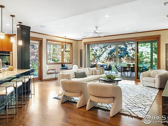 Just moments from downtown, this property offers a serene escape that captures the essence of Boulder living at its finest. This craftsman gem, remodeled in 2013 blends nature with contemporary sophistication. A welcoming front porch greets your arrival. Wood flooring guides you to the Great Room, an inviting space highlighting the fluid layout. The kitchen is a chef's dream and boasts premium Dacor appliances, including a 6-burner stove, plenty of storage in the custom cherry cabinets, and a wine fridge in a huge butler's pantry. Panda Doors are telescoping, showcasing exceptional craftsmanship and creating seamless indoor-outdoor living. The private outdoor space is a tranquil escape featuring a water feature, fire pit, and exceptional outdoor kitchen while occupying a generous-sized yard. The secluded primary suite is a peaceful retreat with a gas fireplace, a sunroom overlooking the backyard, and a private deck over the garage. The sumptuous spa-like bathroom features high-end finishes, a huge steam shower, and a wet bar coffee station with a beverage fridge. The lower level is outfitted for a theater room. You will love the private suite above the garage, ideal for guests or staff. The rare floor plan is perfect for multi-generational living. This property is a remarkable sanctuary, offering an unparalleled lifestyle for those seeking elegance and tranquility. Owned solar panels and water shares to the Silver Lake Ditch top off this flawless property.