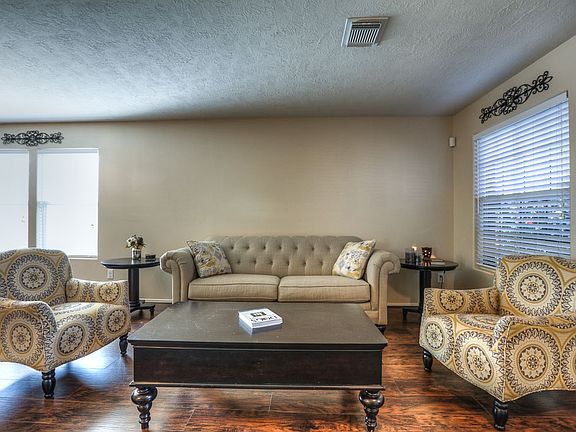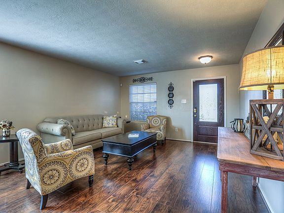 Large home located on quiet double cul-de-sac lot. Recent wood flooring in dining, living area. Large open floorplan with generous size bedrooms and custom paint colors througout. This elegant home features recessed ceilings in den and master and upgraded light fixtures. Big practical storage. Nice curb appeal, large covered patio, great for entertaining. Yard has complete sprinkler system. Updated black appliances in kitchen, heavy storm door on back. Don't miss seeing this wonderful home!