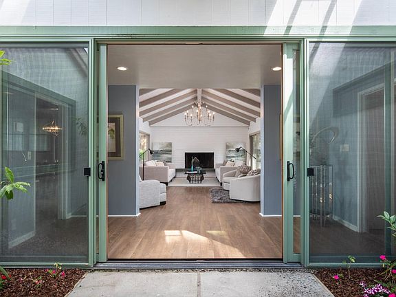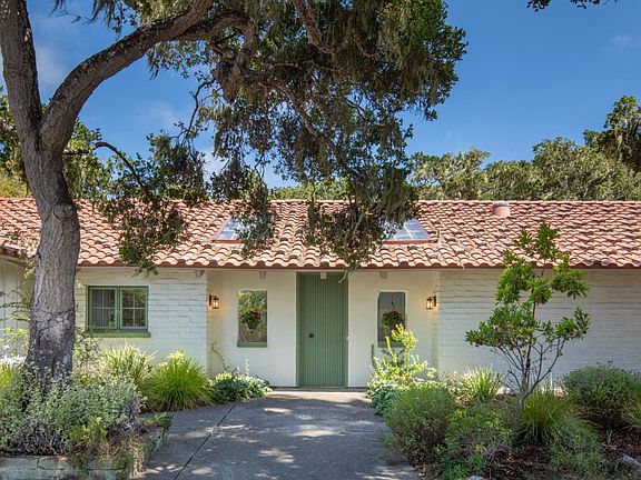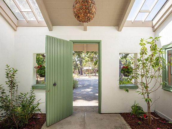 Classic and cozy this single level updated Country Club home offers a warm blend of an early California adobe home with a modern feel and finish. Set far back from the road with a sweeping circular drive, the approach creates an impression of a arriving to a small Hacienda with it's largeness in land, privacy in setting and a greenbelt in view. Featuring a great room with high vaulted ceilings, with windows on each side for a spacious comfortable living space, an open dining room with garden views and a stylish and modern kitchen with natural light. Drawing one out back to the rear yard is a stone paver patio on two sides, with curved stone walls and landscaped beds for privacy and comfort. Charming and peaceful this home is delightful inside, appealing on the outside and a great place for a home on all sides.