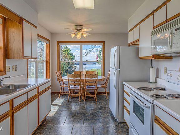 Indulge in breathtaking panoramic views of the majestic Missouri River from this stunning 4.38 acre property located in the heart of Washburn & walking distance from downtown. Step inside and be greeted by the inviting kitchen/dining area, offering the perfect setting to savor meals while soaking in the picturesque view. The main floor is 952 square feet of living space, featuring a family room with equally mesmerizing views, two bedrooms, and a full bath. Downstairs, the basement unfolds into a spacious family room, to include a gas fireplace and a walk-out, providing seamless access to the outdoors, along with an additional bedroom, 3/4 bath & laundry area.