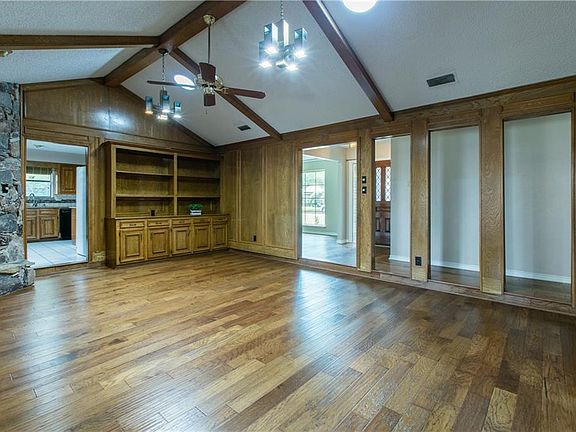 Must See!! Custom single story home located in the heart of Richardson. Convenient to shopping, a few of Minutes to 75 & 635 Highway. 4 bedrooms with 2.5 Bath, 2 Living & 2 Dining. Large Living area features a big stone fireplace and natural Light from skylights, Beautiful wood paneling wall, beaned ceiling, and built-in Shelf. Hardwood floor in Living and Hallway. Updated Kitchen with a plenty of cabinets, Island, Granite counter top, custom Back splashes and SS oven appliances and Vent Hood. A 5x6 room could be Pantry room. This Light and Bright. Nice large cover Patio, Wet Bar, Sprinkler system.