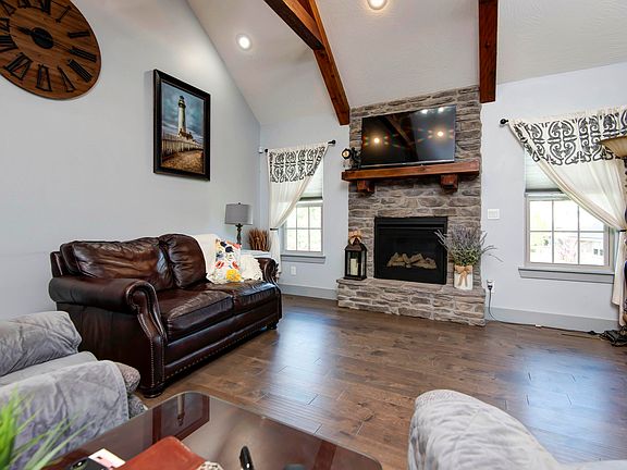 Take a look at this custom all brick 5 bedroom home in the popular Barrington Springs subdivision in Ozark, right across the street from the subdivision pool. Sitting on a large privacy fenced lot, this home is sure to appeal to anyone searching for a quality built home with all of the bells and whistles. Once inside, you'll immediately notice the soaring ceilings with exposed beams over the open concept living and dining area, as well as the beautiful kitchen cabinetry with granite counters and walk-in pantry. Generous space continues as you walk in to the primary bedroom and ensuite with dual sink vanity, jetted tub and walk-in shower, and of course, an impressive walk-in closet. A second bedroom and full hall bath round out the main floor amenities. Walking downstairs, the basement features another huge living area, an attractive kitchenette/wet bar with counter bar area, 3 more nice sized bedrooms, and another full bathroom. Out back there's a covered deck upstairs, a covered patio downstairs, and a custom matching brick storage building, complete with concrete floor and electric, to stow all of your toys, tools, and equipment. Call your favorite Realtor today, and come take a look at all this gorgeous home has to offer.