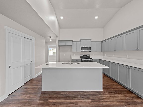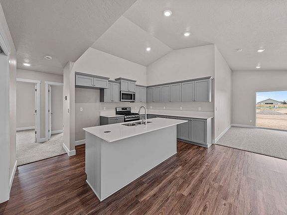 This stunning brand-new home in the desirable Canyon Trails neighborhood offers the perfect blend of contemporary design and comfort. This 1701 SQFT single level home features deluxe chef's kitchen with quartz counters, pantry, island, dishwasher and 5 burner stainless convection built-in gas range. A luxurious primary suite with walk-in closet, great room, 95% high efficiency gas forced air heating and gas fireplace. Built by award winning builder MonteVista Homes.