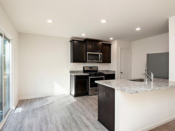 This home is nestled on a private disc golf course & nature preserve just minutes away from Hwy 12. In addition to the oversized lot, this home backs up to a nature preserve and features a pond view, with no rear neighbors! The Benton twinhome features an open concept split-level layout w/ 3 bedrooms, 2.5 bathrooms, & an attached 2 car garage. This home boasts an open entertaining area w/ a spacious family room, separate dining room nook, & an upgraded kitchen equipped w/ granite countertops, custom cabinetry, recessed lighting, plank flooring & full suite of stainless steel appliances. In the private owner’s retreat, you will find a luxuriously large bedroom w/ attached bathroom showcasing linen storage, a gorgeous granite-topped vanity, private commode & a huge walk-in closet. The fully finished lower level offers a walk-out patio door, 2 more bedrooms, a 2nd full bathroom, a flex room & the laundry room. A Fully finished deck off the dining room finishes off this beautiful home