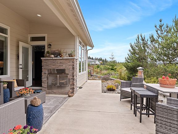 This home has gone pending 3 times, to the SAME buyers, and was terminated all three times due to buyers. No fault of seller. Stunning viewscape and tranquil forest setting! Quiet cul-de-sac location in sought-after, pride-of-ownership neighborhood. Single story living, 5 years' new, 3 bed, 2 bath, covered front and back porches, entertainers' dream kitchen with granite countertops and Kitchen-Aid appliances. 9 foot ceilings, transom windows throughout. Gas fireplace accents the grand vaulted Great Room. Wood floors, linen tile in bathrooms, dual blinds, on-demand tankless water heater, inside laundry, 2-car garage, heat pump, A/C, decorator ceiling fans. Outdoor oasis complete with raised garden beds, established landscape and patio, gas barbeque hook-ups, hot tub ready, and outdoor gas fireplace. The complete package! Minutes to local beaches, Shore Acres State Park, and many PNW "bucket list" day-trip destinations.Recent inspection in hand!!