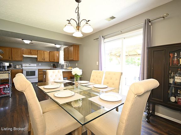 Welcome home to this four bedroom, 2 1/2 bath home that blends traditional charm with modern comfort. On the first floor, the living room and dining room offers a great place to gather. A well equipped kitchen, first floor floor laundry and a powder room finish out the space. Upstairs offers 4 spacious bedrooms, including a primary bedroom with ensuite that has a walk-in closet, whirlpool tub, separate shower and dual vanities, 3 additional bedrooms and another full bathroom. Beautiful curb appeal, 2 car garage and a back yard oasis with a fresh patio that is covered, which is perfect for entertaining and fully privacy fenced. The back yard completes this picture perfect home. This home comes with a transferable home warranty, the washer and dryer plus all appliances stay! Situated conveniently to shopping, historic downtown La Grange, interstate I-71, restaurants, local activities and within the award winning Oldham County School system.