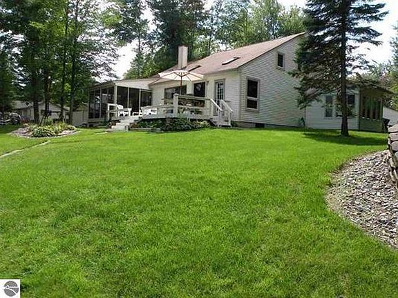 This 2 story 2500 plus sq ft, 3 plus bedrooms, and 3 full baths home on Secord Lake has great features that include; 164 ft of sandy water frontage on .75 of an acre, main floor master bedroom with private full bath, main floor laundry, large kitchen with plenty of counter space and cupboards, 4 seasons room, large living room with cathedral ceiling, large deck, and a great screened in deck. There is a 3 car garage, concrete drive, a 28x28 garage with a sauna and another 18 x 30 garage on 1.5 acres across the road. There are too many features to list, it is a Must See! One of the best features...Natural wooded view of State land across the water for that true Up North feel.