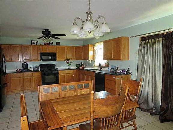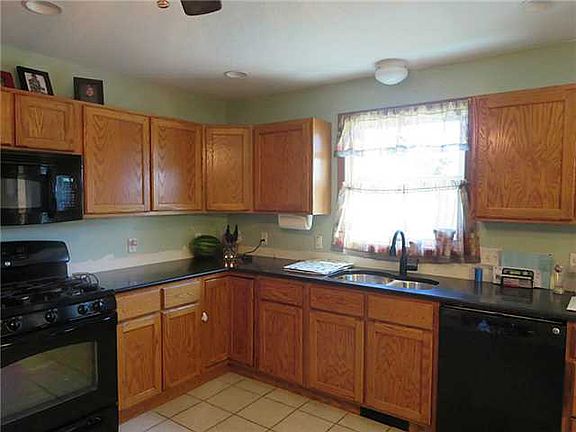 Country porch showcase the curb appeal of this home. Spacious eat in kitchen w/custom oak cabinetry, Black Quartz counter tops & ceramic tile. Appliances stay, including washer & dryer. Master has walk in closet. Finished basement adds bonus square footage, featuring a stand alone fireplace. Huge a backyard, great space for the kids to play. Newers include: Lights, Ceiling Fans, Windows & Slider.