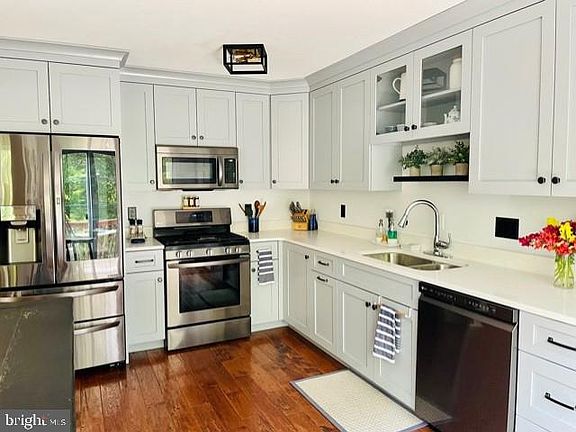 Knock at the door and be prepared to step in to the 2-story foyer with lots of natural light and a turned open staircase and be prepared to fall in love with the custom built totally remodeled kitchen, quartz countertops, newer appliances, hardwood floors throughout on first floor, gas fireplace, open floor plan, newer carpet on stairs and throughout second floor, master bedroom with cathedral ceilings, fabulous master bath with walk-in shower, remodeled and custom master closet, new double sink with new flooring and HEATED! This home backs up to the woods for some added privacy as you sit on your deck off of the kitchen. Full finished basement with lots of room for entertaining and even some office space(added sq. footage). This home has been loved and well cared for. HOA fee includes replacement of windows and roof and NEW ROOF being complete by mid October. NEW garage door opener motor installed summer of 2021.
