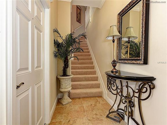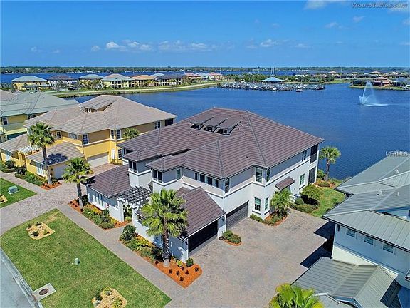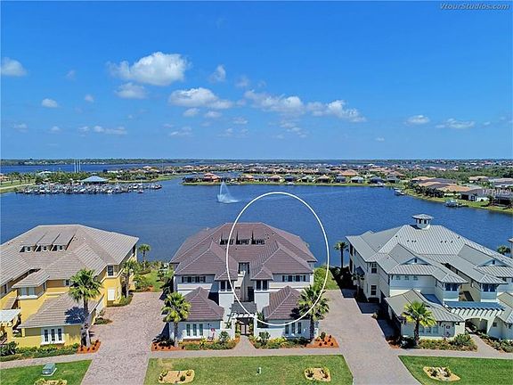 This Carriage Home is designed to live like a single-family home, the living area is on the second level and earlier served as the Model. The spacious floor plan looks out on an eye-catching Lagoon and Marina, treating the viewer to the vibrancy of water and water life! The Gatehouse security and entry fountain welcome you and your guests. The front door opens into an entry Foyer with a private elevator and stairs, or you may gain access by using the two-car garage. A spectacular architectural feature greets you in the family and entertainment area with 11 ft trayed ceilings. Custom crown molding frames the suites sliding glass doors, expansive windows, as well as the upgraded bathroom with twin Corian vanities. Large floor tiles and five Casablanca fans are featured throughout the home and matching tiles were laid throughout the Lanai, providing continuity and a sense of space. The large kitchen is beautifully appointed with granite counter tops and custom wood cabinetry in full view of the water. While dining on the Lanai at night the fountain dances with light. The Club House in Tidewater, called The Lodge, invites community social activity. Its heated swimming pool with shaded veranda, pool-side fireplace overlooks the Manatee River. A step away is the fitness center, a nature and jogging trail, dog park and playground. Something for everyone! Oh yes, and then theres the Marina and tennis complex at the Port and Court, the centerpiece for year-around boating and tennis activity.
