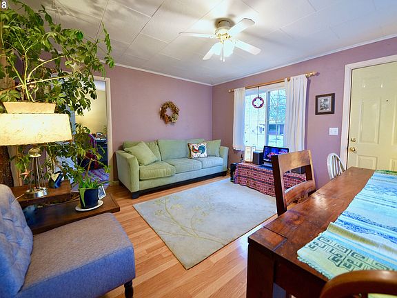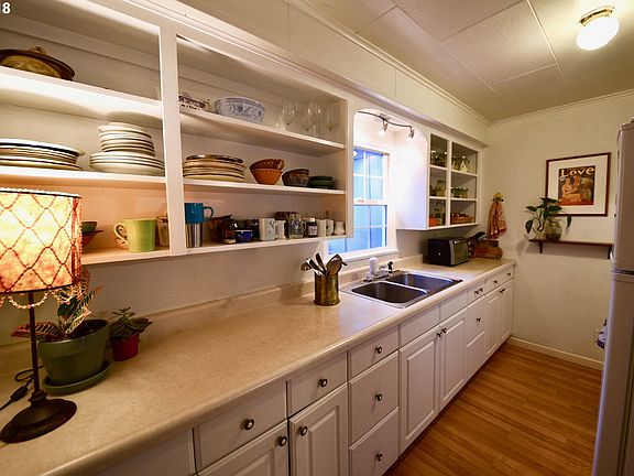 Stylish 2 BR cottage in quiet neighborhood with abundant yard/garden space, charming bathroom, galley kitchen with open shelving, laundry room, garage, and a back patio for all season outdoor enjoyment. Chicken run, pond, garden shed for extra storage, and lots of light throughout. Separate sliding door entrance out the master to the backyard - maybe for your hot tub? Easy and safe walk/bike to school. Two blocks to the aquatic center.