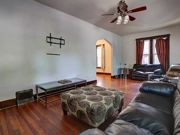 Welcome to this 4 bedroom 1 1/2 bathroom home. Upon entering you will find a spacious living room that boasts beautiful hardwood floors, a huge picture window to allow for tons of natural light, ceiling fan, a wood fire place with side built in bookshelves and is open to the formal dining room. The dining room has hardwood floors. The kitchen features an abundance of cabinets, laminate counter-tops and stainless steel appliances. There are two bedrooms generous in size and a full bathroom that has been remodeled to complete the main level. Upstairs there are two separate areas that can be utilized as bedrooms and a 1/2 bathroom. Downstairs a an unfinished basement that makes a great space for any extra storage you may need. Step out back to find a partially private backyard, a fire-pit, garage and parking.