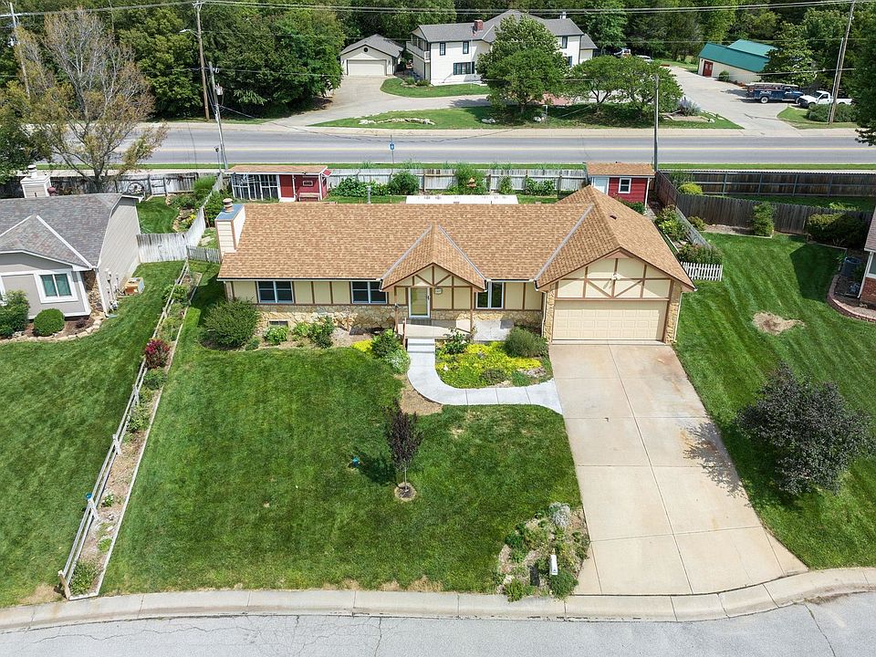 Jaw-dropping 4 bedroom ranch home is an updated masterpiece boasting a perfect blend of modern style, premium features, & carefree lifestyle. From the moment you step inside, you'll be captivated by the spacious rooms and move-in ready decor that creates a warm & inviting atmosphere. The NEW kitchen is a dream come true for all the aspiring chefs out there featuring top-of-the-line stainless appliances, sleek granite countertops, & ample storage space. Imagine whipping up delicious meals while enjoying the company of your loved ones in this stylish & functional space. There are 3 bedrooms on the main floor all with easy-care LVP flooring & neutral paint. Let's not forget about the 2 bathrooms that are completely renovated where you can indulge in a spa-like experience after a long day. Don't overlook the family room with woodturning fireplace for large gatherings, the 4th bedroom, rough-in for 3rd bath, & ample storage in the full daylight basement. But that's NOT ALL! Check out the HUGE deck that is partly covered in the privacy fenced backyard kept lush by the automatic sprinkler system on cost-saving irrigation well. A lawn storage building keeps excess out of your attached 2 car garage. Check out the custom built chicken house. Located on a quiet culdesac, this affordable home offers the best of all worlds--a serene retreat away from the hustle & bustle yet conveniently close to all amenities you need. Plus Derby schools are top-notch. So if you've been dreaming of finding your perfect forever home, this is you chance?