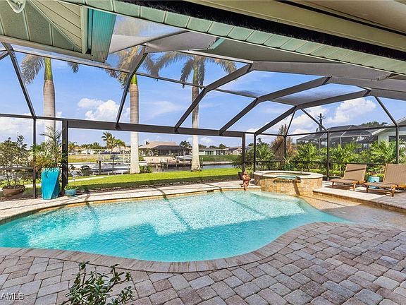 Welcome to your dream home! This meticulously maintained 3 Bedroom, 2 Bath Gulf Access Pool Home is situated on an oversized lot with lush, mature landscaping featuring Royal & Christmas Tree Palms, along with an abundance of other flowering plants. This beautiful residence, untouched by Hurricane Ian flood waters, boasts a New Roof and rescreened Lanai Cage (post-Ian), some Impact Resistant Windows and Electric Rolldown Storm Catcher Screens on the lanai, and it’s wired for a generator, ensuring peace of mind and security. This home is located in Flood Zone X, which means there is NO FLOOD INSURANCE REQUIRED! Flood Insurance is Optional. The current owner does have an assumable flood policy and they currently pay $792.00 annually! Experience modern elegance in this open concept living area, designed for both relaxation and entertainment. Step down into the cozy living room, with the transition marked by beautifully tiled risers. The Kitchen, redone in 2022, boasts white soft close Cabinetry, Toe Kick Drawers to store baking sheets and platters, Stainless Steel Appliances, and a Large Island with Pendant Lighting and Barstool Seating. Natural Light floods the space through Large Windows, highlighting the mix of Wood and Tiled Flooring. The Primary Suite features wood laminate flooring, a Large Walk-in Closet and Sliders that open directly to the pool and lanai. The Master Bath, redone in 2020, showcases LVP Flooring, a New Vanity and a Spa-like Walk-in Shower. Two additional Bedrooms provide ample space for family or guests, with a Full Guest Bath, also renovated in 2020, serving as a convenient Pool Bath to the outdoors. Step outside to the Brick Paver Lanai, where you'll find plenty of room for outdoor dining and entertainment. The Heated Saltwater Pool, complete with a Suntan Ledge and Integrated Spa/Hot Tub, promises endless hours of relaxation and fun. For boating enthusiasts, the Large Composite Dock with a Boat Canopy and an 8,000 lb. Proximity to the river provides quick access to the Gulf of Mexico and its beautiful beaches. Conveniently located, this home offers easy access to shopping, dining, and the vibrant attractions of Cape Coral & Fort Myers. This home would be a wonderful full-time residence or an ideal winter retreat! Perfect for family gatherings and entertaining guests, providing a warm and inviting atmosphere. Don’t let this one slip away! Secure your “Piece of Paradise” today!