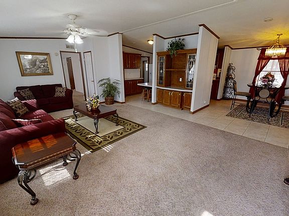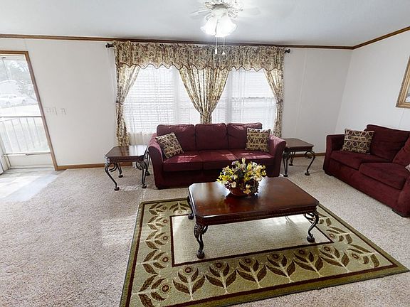 Very well maintained mobile home that sits on a large lot. Sequestered primary bedroom with garden tub and stand up shower. 2 living areas, built in shelves, breakfast bar, steel back porch and 2 storage sheds on the property. Call today for a private showing.