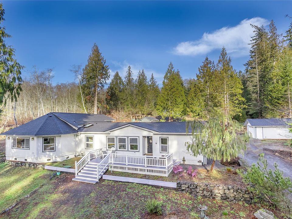 Uncover a hidden gem in the PNW, this 3-acre view property is packed w/must haves you didn't know you needed! Private circular drive leading to the main house boasting an expansive deck, 1,200 sq ft addition & stunning views across the entire front of home. Step inside to a tastefully upgraded bright & open floor plan offering flexible living & entertaining options. 2 bdrms, den, sunroom, family rm, living rm & more. Store your vehicles, tools in the lower garage, convert to ADU or cultivate in upper garage, complete w/electric & water. Charming gazebo & covered deck to take in stunning views of Squamish Harbor, Puget Sound & glimpses of the Olympics. Long list of upgrades including newer roofs, fresh paint, well pump, HW floors & more.