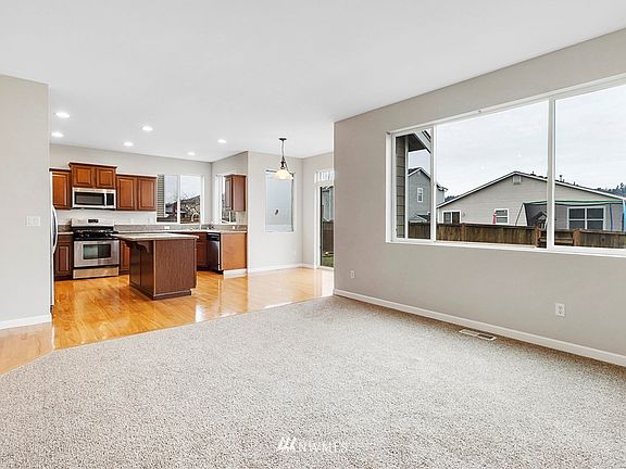 Stunning Updated Home w/New Carpets, New paint & Refinished Hardwood Floors, & MORE! LOVE the traditional floorplan w/private Jr. Suite w/full bath on main floor, Cook's kitchen w/island, pull out shelving, Whirlpool appl. & all open to large Family rm. Entertain in beautiful living/dining rm w/coffered ceilings . Upstairs will amaze w/large open loft perfect for computer area, Huge Bonues Room, 3 generous bedrooms + Oversized Primary Suite w/view of Puyallup Hills. Community parks, trails & river access!
