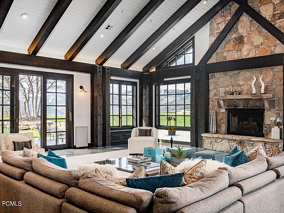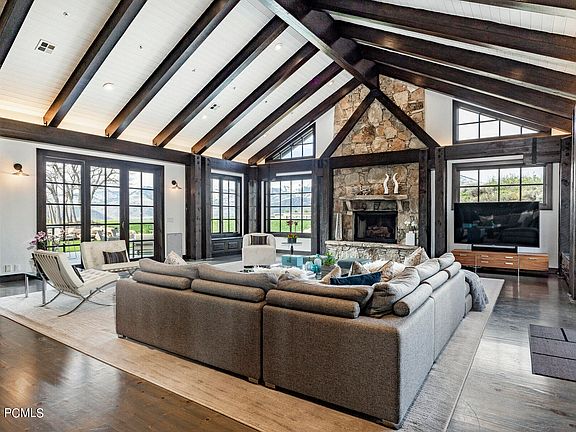 This stunning Glenwild mountain contemporary is set on 2.4 acres overlooking Olympic Park, Park City and Deer Valley Ski Resorts, Swaner Preserve, and the Glenwild golf course. Situated on the ridge of Snow Berry Street, this carefully updated 8000 sf residence boasts thoughtfully designed layouts combining intimacy with dramatic open living spaces, making this home ideal for both large and small gatherings. The sophisticated details that went into the remodel are evident throughout and allow for a move-in-ready residence. A remarkable entrance gallery gives way to a dramatic dining and living room that are replete with vaulted ceilings, brilliant beams, gorgeous wide plank floors, 2 stone fireplaces, and surrounded by windows. 3 en-suite bedrooms are off the gallery including the primary bedroom suite with breathtaking views from every window. The arresting kitchen with fireplace, indoor and outdoor breakfast areas flank the other side. The lower level showcases a gracious entry with custom shelving and walls for art, a family room, wet bar, spa-like bath area that leads to a covered outdoor hot tub, and two additional guest bedrooms. Impeccably landscaped, the massively flat and very private yard gives way to the most dramatic Park City views and borders countless acres of hiking and biking trails. Mature foliage in front of the house along with multiple terraces and patios, a magnificent outdoor fire pit lounge, and a sunset viewing deck set this fabulous property apart from all the rest. A heated 3-car garage and driveway, custom work shed and ample seasonal storage complete this impressive residence. Glenwild is the only gated golf course community in the Park City school district and features the number 1 rated golf course in Utah. The community's gated entranceways and guardhouses ensure the highest level of privacy and security.