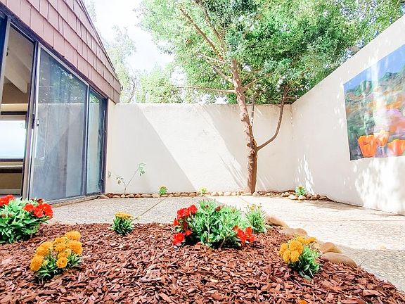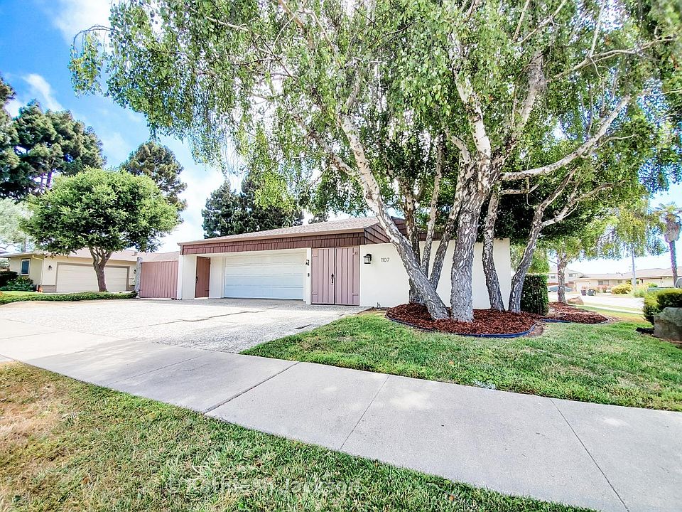 Beautifully updated single story home on a corner lot. Granite counters and stainless appliances in the kitchen, beautiful floors throughout, freshly painted. This 3 bedroom 2 bath has been very well maintained and cared for. You enter through the protected courtyard and then to the large living room with vaulted ceilings, fireplace and hidden bar. There is a formal dining room and a very large kitchen/ family room. French door open to the patio and low maintenance backyard.