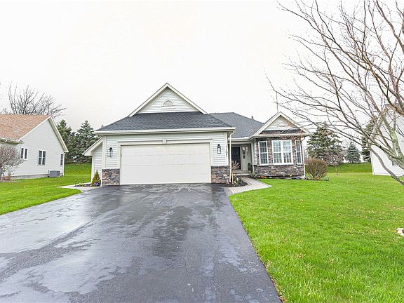 This Exquisite ranch home offers comfortable and convenient living in the heart of a vibrant 55+ community. This inviting home offers the perfect blend of modern amenities and cozy living, ideal for those seeking an active and engaging lifestyle. As you step inside, you'll be greeted by a spacious and inviting living area, perfect for relaxing or entertaining guests. The open floor plan seamlessly flows into the well-appointed kitchen, complete with granite countertops, ample cabinet space, and modern appliances, making meal preparation a breeze. The home boasts two generously sized bedrooms and two full baths, providing plenty of space for both homeowners and guests. Outside, you'll find a private deck (installed '23), perfect for enjoying your morning coffee or hosting summer barbecues with friends. Updates include a tear off roof in '17, sump pump in '22, furnace & humidifier '21, Central Air '17, Stone front & walkway '21. Minutes from Webster Village, shopping and the expressway. Showings begin Wednesday, All offers are due Tuesday, April 9th at 10am. Please note limited showing times Wed, Thrs & Fri 4pm-7pm; Sat. & Sun 9am to 7pm. Monday 4/8 showings 4pm to 7pm.