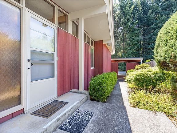 Charming in-town gem with Frank Lloyd Wright–inspired design! This 5-bed, 2-bath home offers timeless style with added basement space. Main level features 3 bedrooms, a bright dining room, skylit kitchen, cozy fireplace, bathroom, hardwood floor in front room under carpet with an inviting porch. Downstairs has a private entrance, 2 bedrooms, bath, spacious living room with fireplace, storage, and room for a kitchen—ideal for multi-gen living or rental potential. Situated on a huge corner lot with carport and beautiful landscaping. Endless possibilities await!