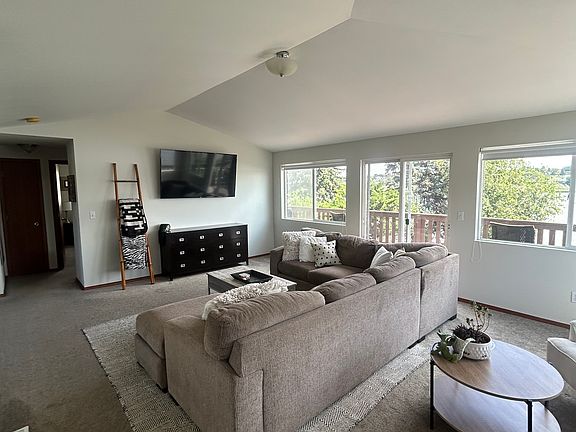 Nice, waterfront home on Moses Lake. 3 bedroom- 2 bath- living room, dining room, kitchen on main floor with King bed master bedroom/bath. Downstairs laundry room, 2 bedrooms (1 King bed and 1 Full bed. Full bedroom doesn't have a window, but has a closet) and a large rec room with Smart TV. Access to Lake from upstairs and downstairs. Large back deck. Nice clean home. Close to town, farmers market, Surf & Slide water park, restaurants and shopping. Call for showing. Fully Furnished for short or long term stay. All Utilities and WIFI included.
