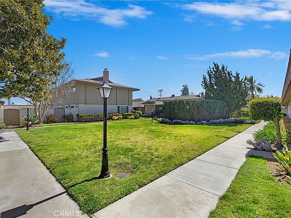 Gorgeous condo in Santa Ana. This complex is located across the street from the desirable Floral Park community and the beautiful Morrison Park, which offers basketball, tennis and baseball playground. This is a well kept condo complex surrounded by lush trees and plants offering added privacy and swimming pool with recreational area. Come check out this rare opportunity to own this one story end-unit condo with an oversized patio, drive up access to the main entrance and to a large guest parking area. No back common wall, no neighbors. This recently upgraded unit features, two large bedrooms, two full bathrooms, wood like porcelain tile flooring, baseboard and crown molding throughout, recessed dimmable lighting, new double pane windows, custom built entertainment center, wood burning fireplace, brand new kitchen with soft close lower and upper cabinetry, granite countertop, under cabinet Alexa compatible LED lighting, undermount farmhouse sink, Kenmore elite stainless steel appliances, hidden garbage drawer, stainless steel island mounted range hood, kitchen ceiling fan, new ac/heat unit in living room, radiated heat in bedrooms, upgraded light fixtures, finished travertine bath with tub and stand-up shower, upgraded cabinetry and much more. This complex is consistently well maintained with weekly gardening service. HOA includes, water, trash and common area insurance. Yes! it's VA and FHA approved. Do not miss out.