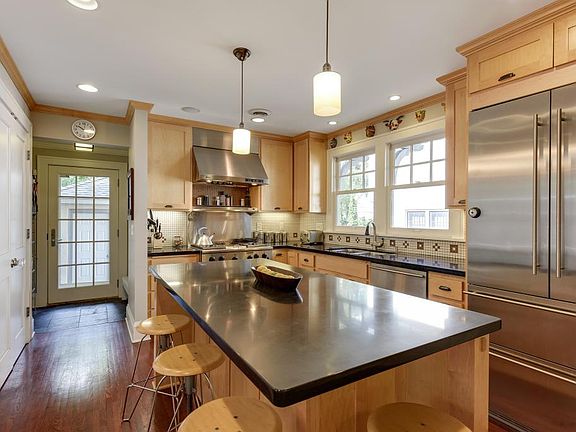 What a phenomenal location-right on the parkway, overlooking the creek! Impressive 2 story addition by Wooden Dreams in 2001 includes first floor family rm, enlarged kitchen w/mudroom/entry area, & large master suite with big full bath, walk-in closet & balcony. Newer, extra large 2 car garage. Lower level was tastefully finished in 2011 to include 3/4 bath & big bedroom w/fireplace! Both have in-floor heat as well. Gourmet appliances, 3 fireplaces, newer boiler, and new sewer line in 2011.